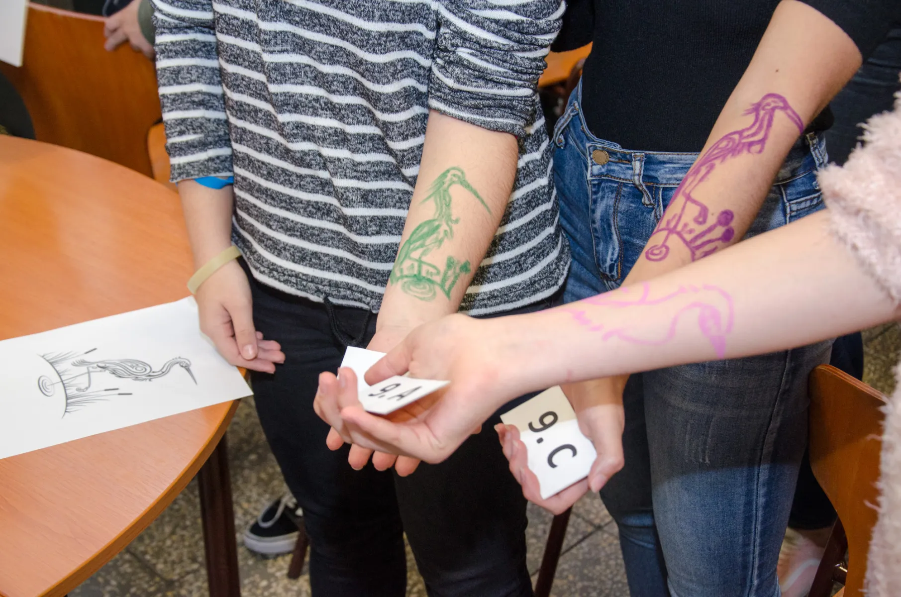 - Csütörtökön egy adott rajzot kellett minél jobban lemásolniuk a társuk karjára