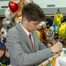 Május 3-én elbúcsúztattuk a végzős évfolyamot. Az ünnepi műsort a 10.A osztály, és Janik Mária tanárnő adta. Gratulálunk a ballagóknak és sok sikert kívánunk az érettségi vizsgákhoz! (Fotók: Bajnok Bernát, 11.D; videó: Marinkás Gábor, 11.D) Galéria