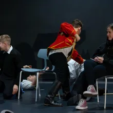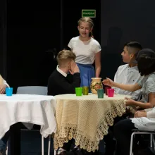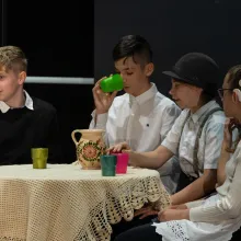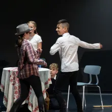 A Jedlik-hét keddi napján a 6.A osztály Horváth Zsuzsanna tanárnő rendezésével 4 alkalommal is előadta a Helység kalapácsát a színházteremben, hogy minden osztálynak lehetősége legyen megtekinteni azt.