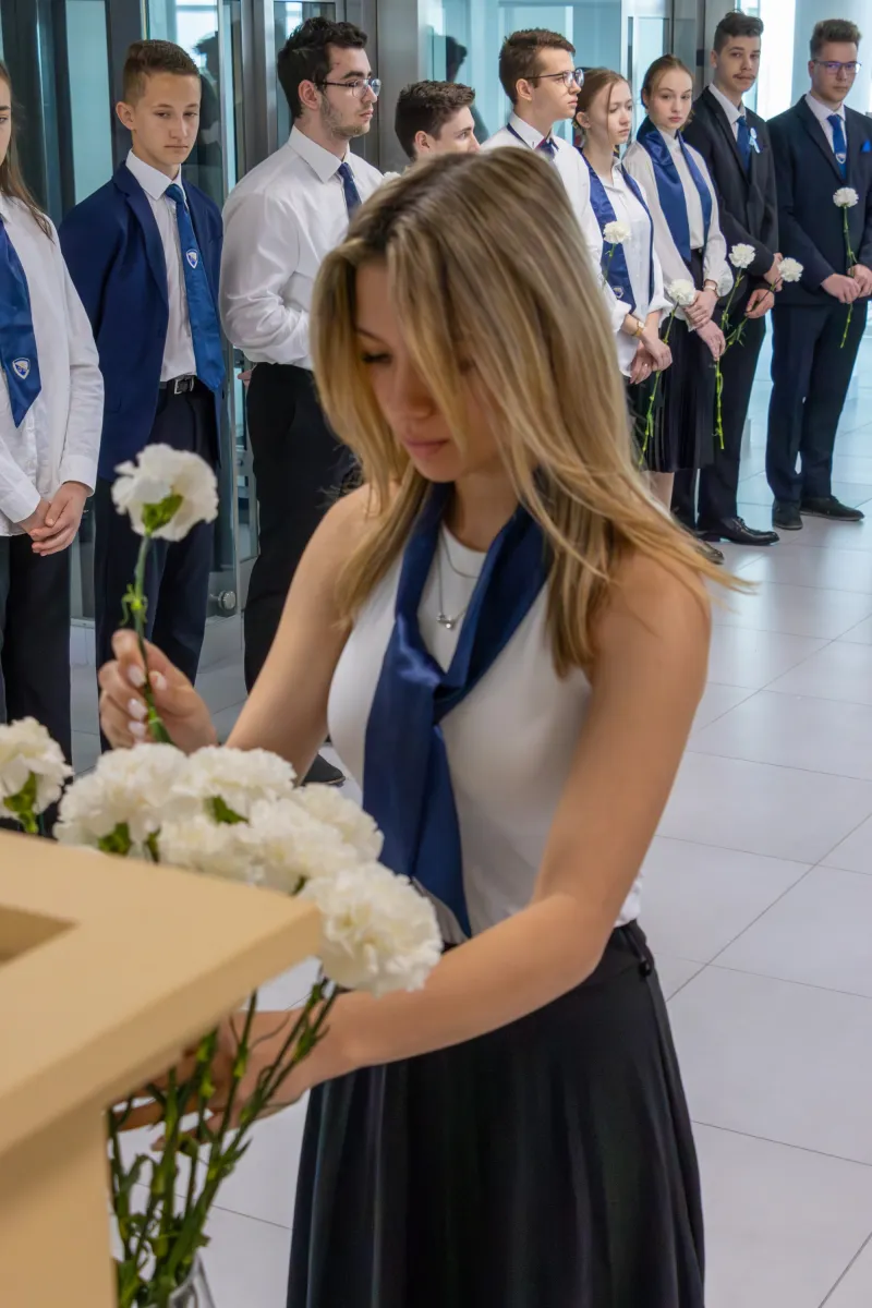 A pénteki tanítás nélküli munkanapon a Jedlik Ányos szobrának megkoszorúzása után szekcióelőadásokon vettünk részt. A választható programok között volt katasztrófavédelmi bemutató, továbbtanulási és pályaorientációs szekciók, tai chi, kreatív műhely, és iskolánk új épületének digitális másában is Minecraftozhattak a résztvevők.