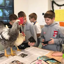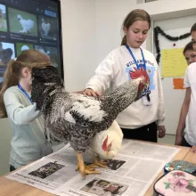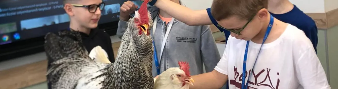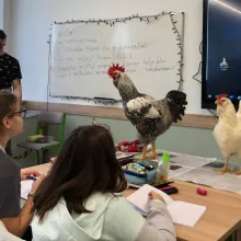 November 29-én az 5.A osztály egy rendhagyó természettudomány tanórán vett részt, melyen két jómadár, egy tyúk, Hópihe és egy kakas, Konyhakakas voltak a vendégek és bemutatópéldányok. A tanulók - Witzing Bálint tanár úr felügyelete mellett - a madarak gazdája, Orbán Estilla, az ELTE történelem-környezettan tanárszakos hallgatója segítségével figyelhették meg a két gyönyörű állat testfelépítését, tollazatát, tanulhattak az életmódjukról, tenyésztésükről, felelős tartásukról és még fotózkodhattak is velük. A tanórák közti szünetekben a többi gimnazista is megnézhette, megsimogathatta, lefényképezhette az állatokat, sőt még a biológia faktosok is profitáltak az eseményből emelt szintű tanulmányaikhoz.