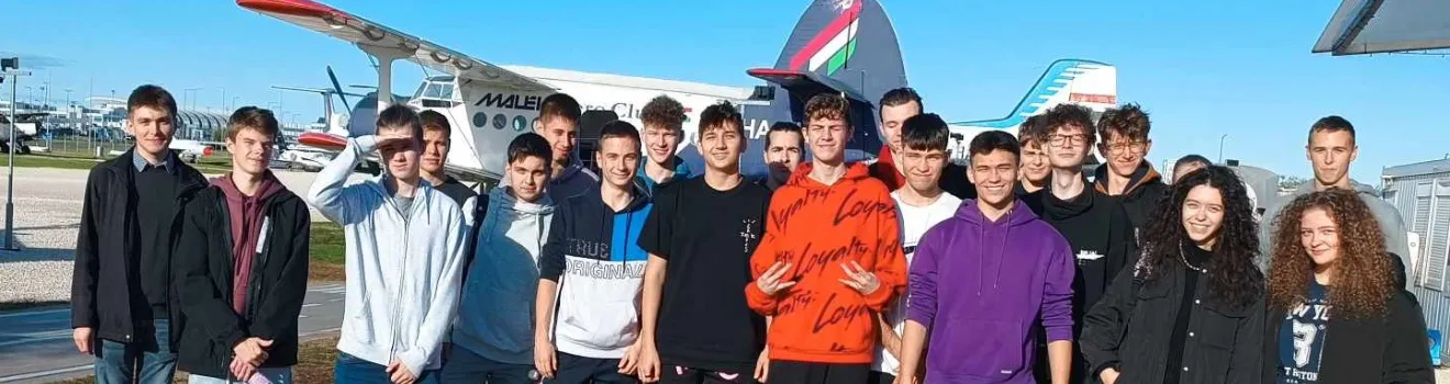2023. november 6-án meglátogattuk a Liszt Ferenc Nemzetközi Repülőteret Kékesi Attila tanár úr szervezésével. Tömegközlekedéssel utaztunk a reptérre. Megérkezve először megnéztük az Aeropark repülőmúzeumot, ahol régebbi repülőgépeket csodálhattunk meg, kívülről és belülről egyaránt. Lehetőségünk volt beülni az egyik gép pilótafülkéjébe is. Ezután egy, korábban a Malév által a repülőtéren használt Ikarus autóbusszal átvittek minket az Aeroplex cég hangárjaihoz, ahol megnézhettük a repülőgépek karbantartási folyamatát. Itt sok hasznos információt megtudtunk a repülőgépek működéséről és felépítéséről. Teljesen „kibelezve” találkoztunk azokkal a gépekkel, melyekkel máskor nyaralni utazhatunk. Repülőmérnök túravezetőink bemutatták például az orrba rejtett radarberendezést, a sebességmérésre használt Pitot-csövet, a szárny és a hajtómű részeit és még sok minden mást.