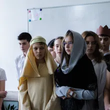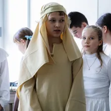 Hagyományainkhoz híven az 5.A osztály betlehemes játékkal készült, és járta vele az osztályokat december 19-én délelőtt. Délután egy külön előadást is tartottak a színházteremben minden érdeklődő számára.