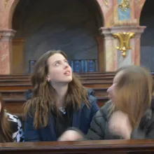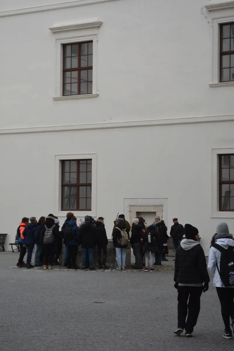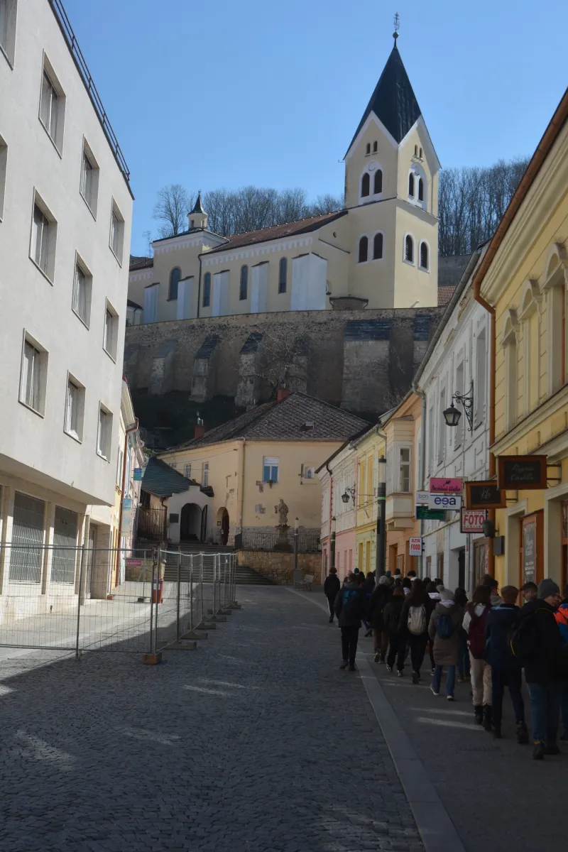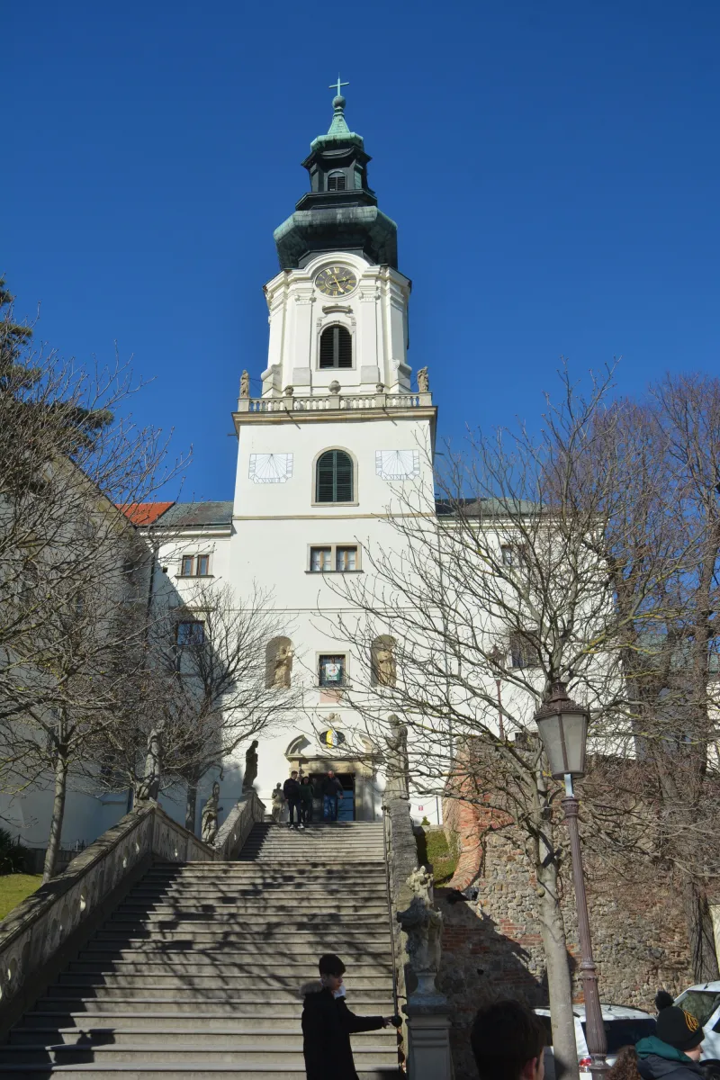 A délutánt Nyitrán töltöttük, ahol a Püspökvárat látogattuk meg. Sétáltunk a nyitrai várkomplexumban, és megcsodáltuk a pompázatos barokk templomot, miközben közvetlenül megszemlélhettük a barokk stílus jellegzetes jegyeit.