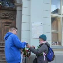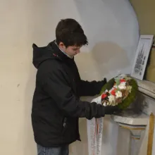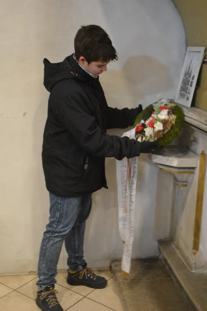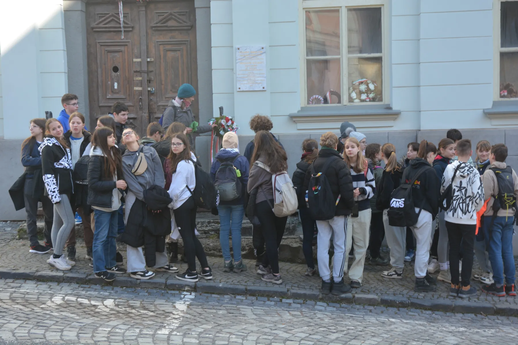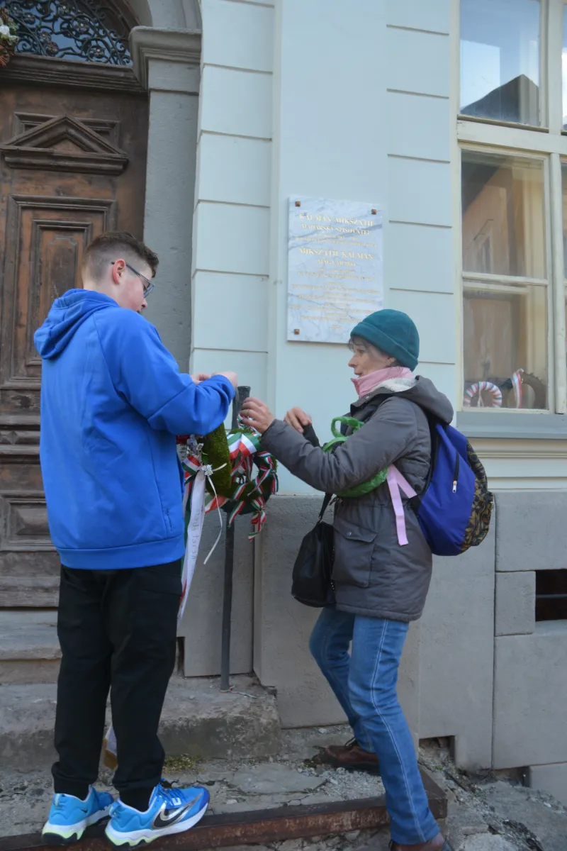 Majd a selmecbányai evangélikus líceum falán lévő emléktábláknál helyeztük el utolsó koszorúnkat, mellyel Petőfi Sándor és Mikszáth Kálmán iránt fejeztük ki tiszteletünket. Ők életük egy szakaszában ezen épület falai között végezték tanulmányaikat.