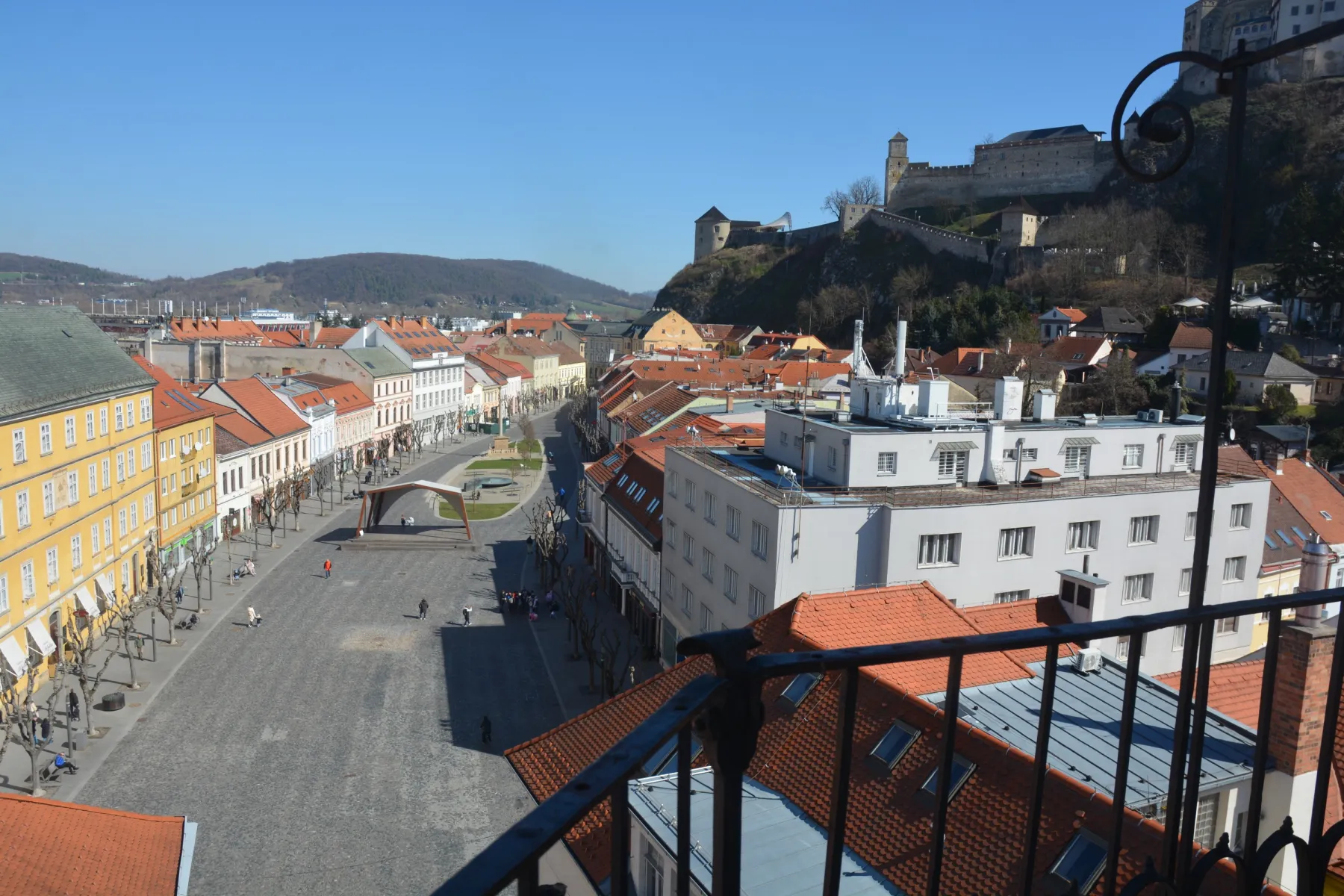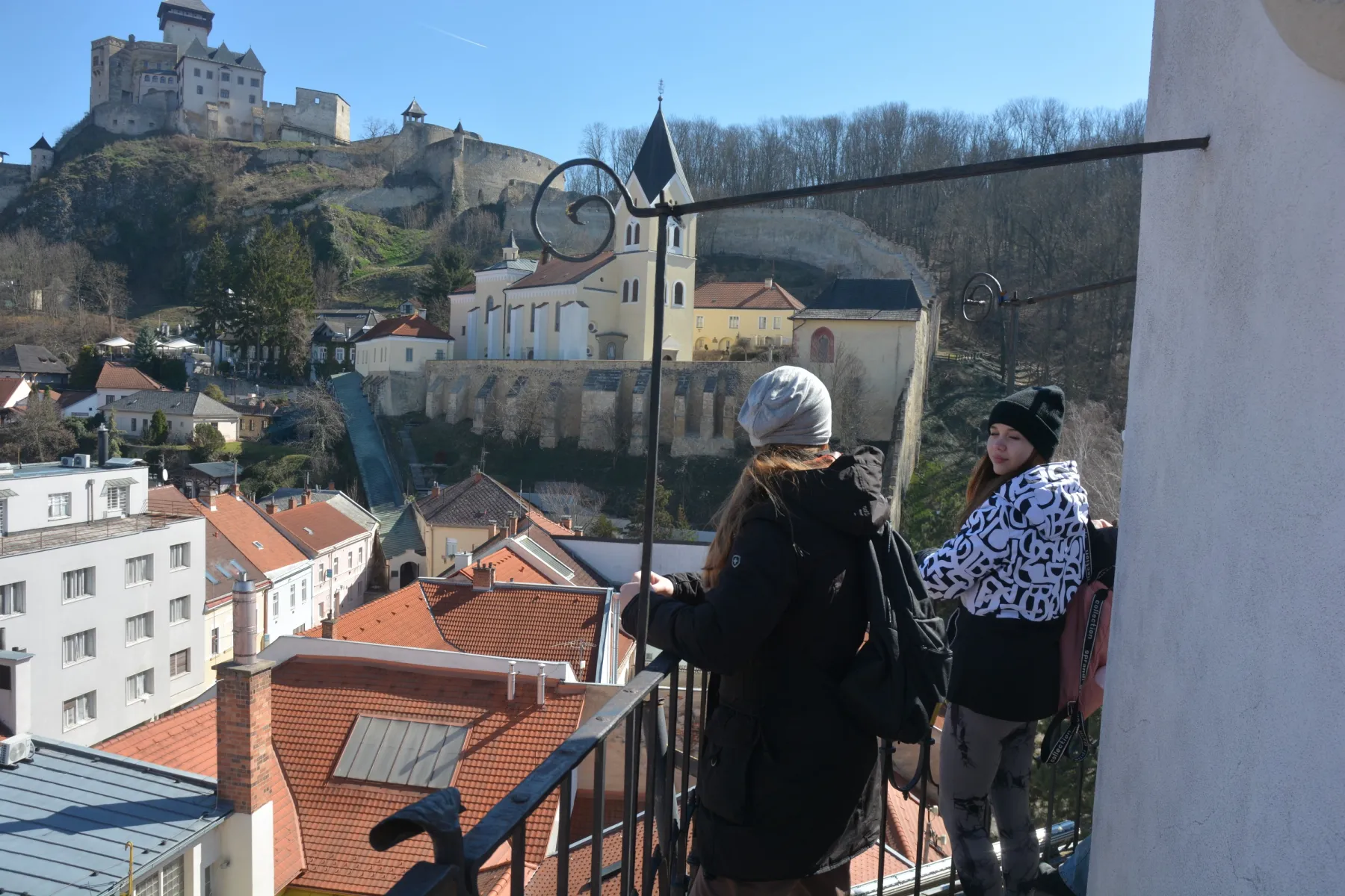Majd átmentünk Trencsénbe. Megtudhattuk, hogy ez a település már a római korban is ismert volt, a Marcus Aurelius császár által vezetett római légiók terjeszkedésének legészakibb bizonyítékait találták meg itt. Először felmentünk az óratoronyba, onnan csodáltuk meg a várost.