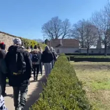 Harmadik napunkon először Trencséntornyosra mentünk. 1708 augusztusában itt játszódott le a Rákóczi szabadságharc egyik fontos csatája, a trencséni csata. Erről az eseményről emlékeztünk meg a trencséntornyosi emlékműnél, ahol elhelyeztük a tiszteletadás és emlékezés koszorúját, és elénekeltünk egy kuruc dalt.