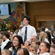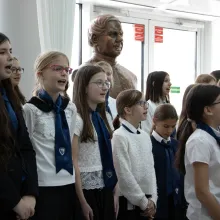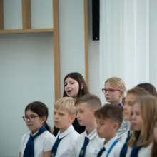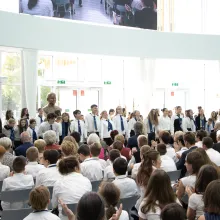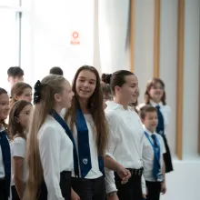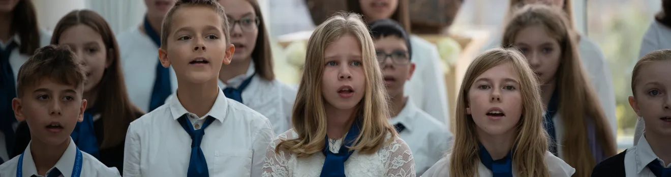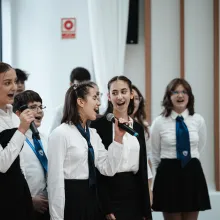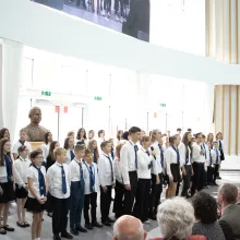 A műsor zárásaként a kisgimnazisták kórusa adta elő Balázs Árpád Bodzavirág című kórusművét Kis-Ferenczy Bíborka zongorakíséretével, majd a nagyobbak énekelték el az LGT együttes Elfelejtett szó című dalát izgalmas, flash mob-stílusban, amellyel nagy sikert arattak. A kórusokat felkészítette és vezényelte Zajácz Zsuzsanna tanárnő.