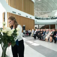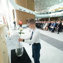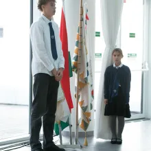 Iskolánk alapításának nyolcvan éves évfordulóját ma ünnepelte iskolaközösségünk. A megemlékezés során ünnepi beszédet hallhattunk Bese Benő igazgató úrtól, Korzenszky Richárd prior emeritustól, megtekinthettük a Csepp-Csepel Néptánc Együttest táncait, Kiss-Ferenczi Bíborka 10.A osztályos tanulónk zongorajátéka közben múltidéző fényképeket, valamint iskolánk névadójának, Jedlik Ányos szobrának koszorúzását.