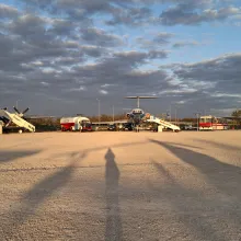 Első úticélunk az Aeroplex repülőgépkarbantartással foglalkozó vállalat hangárjaihoz vezetett, ahol több karbantartás alatt álló repülőgépet láthattunk szétszerelve. Itt egy repülőmérnök vezetett minket a hangárokon keresztül, miközben mesélt a különféle géptípusokról és a hangárban zajló munkafolyamatokról: testközelből láthattuk például, hogyan épül fel egy repülőgép hajtóműve és szárnya, megnézhettük a repülőgép orrában a radarberendezést, a Pitot-csöveket, valamint azt, hogy egyes légitársaságok hogyan csökkentik költségeiket beépített lépcsők segítségével.