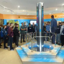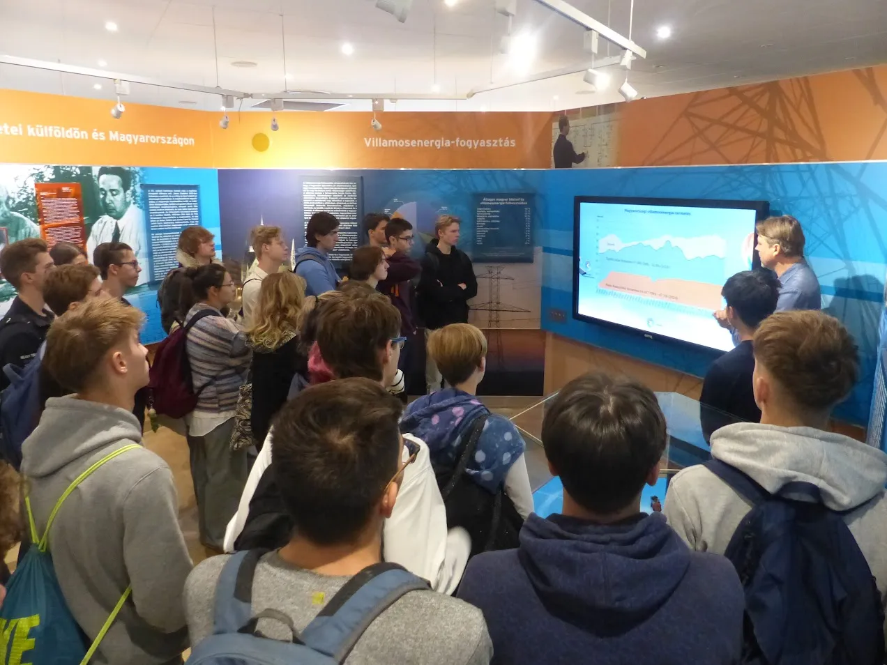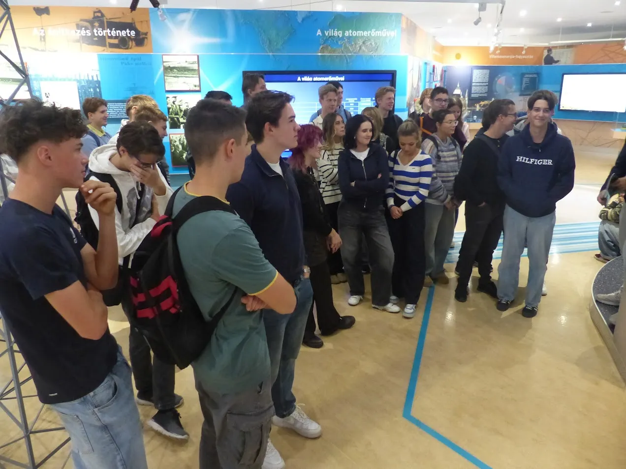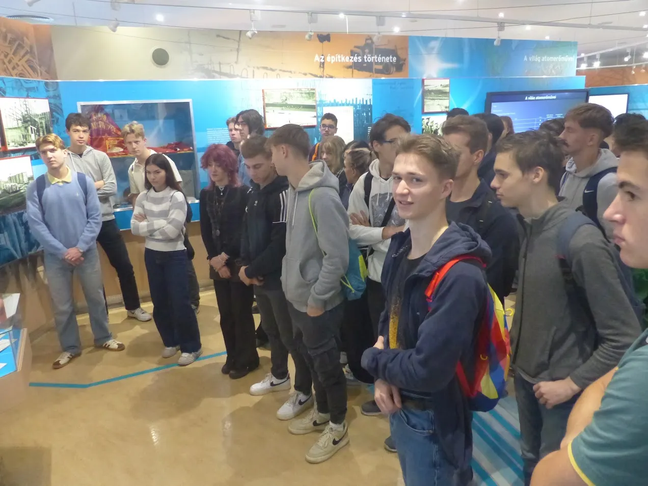 A múzeumban szintén vezetett csoportos programon vettünk részt. A bejáratnál a tárlatvezető röviden elmondta, hogy a kiállítás célja bemutatni az atomenergia történetét és mindennapi alkalmazását. Először régebbi eszközöket és kezelőberendezéseket mutattak meg, amelyeket korábban ténylegesen használtak az erőműben. Ezután maketteket néztünk meg, amelyek segítettek jobban elképzelni, hogyan épül fel és működik egy blokk. A tárlatvezető lépésről lépésre magyarázta el a látottakat, és minden állomásnál volt időnk közelebbről is megnézni mindent. Több interaktív rész is volt, például ki lehetett próbálni egy sugárzásmérőt és más ellenőrző eszközöket. A kiállítás végén azt is bemutatták, hogyan képzik azokat a szakembereket, akik az erőműben dolgoznak. A program végén lehetett kérdezni, majd közösen visszatértünk a kiindulási helyre.