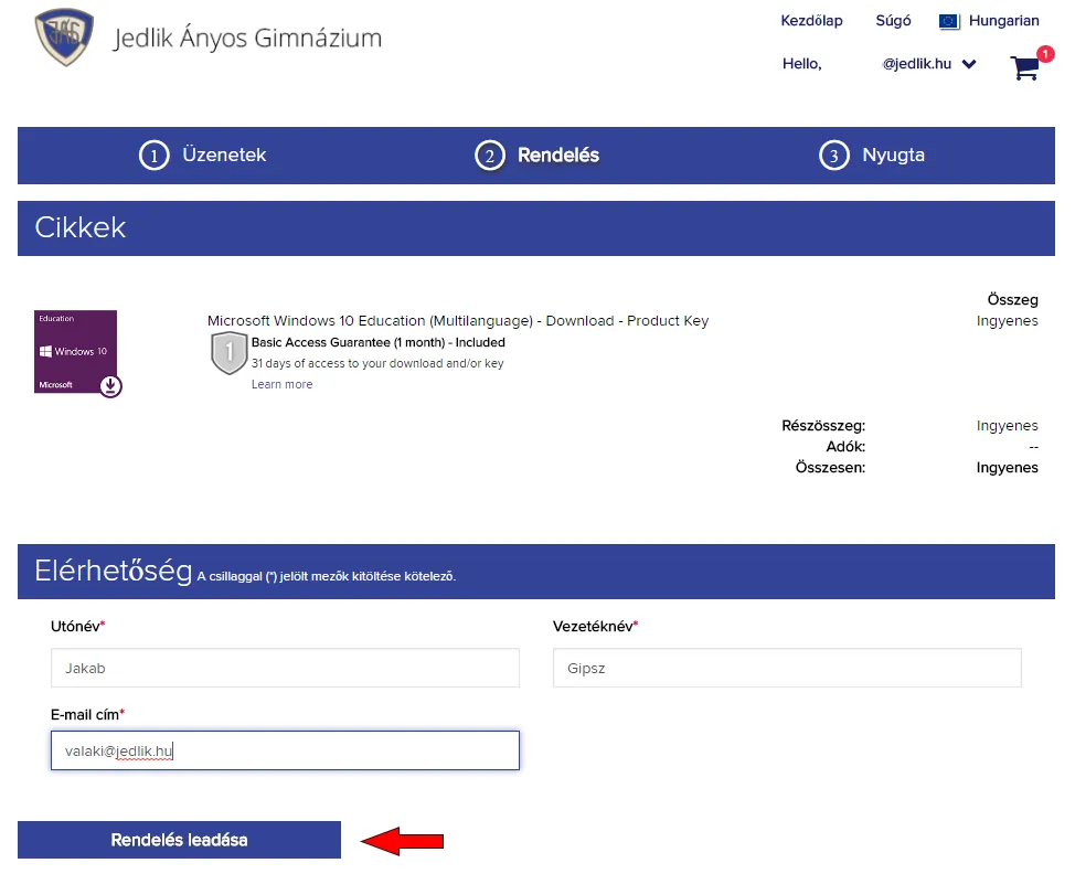 7. lépés: Végül ellenőrizd az elérhetőségeidet a következő oldalon, kattints a Rendelés leadása gombra!